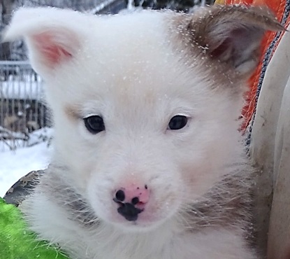 Vielä kevyt tyyppinen, lähes oikeat mittasuhteet. Kevyt piirteinen pää. Hienot tummat silmät. Runko vielä kehitysvaiheessa, hieman jyrkkä lantion asento. Riittävä raajaluusto. Normaalit kulmaukset. Hyvä karvanlaatu. Selkää koskettava häntä. Normaali pennun liike ja käytös.